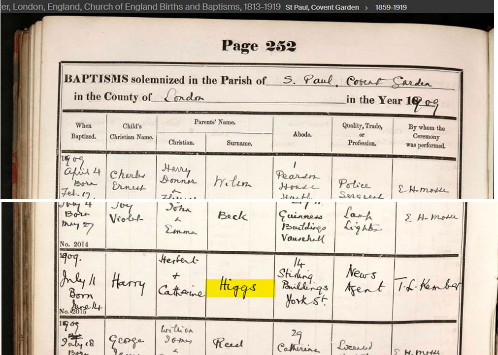 Harry was the son of Herbert Higgs (Willie's brother) and Catherine Bathic. Harry married a Winifred and at one time lived in Royston (see 097 below).