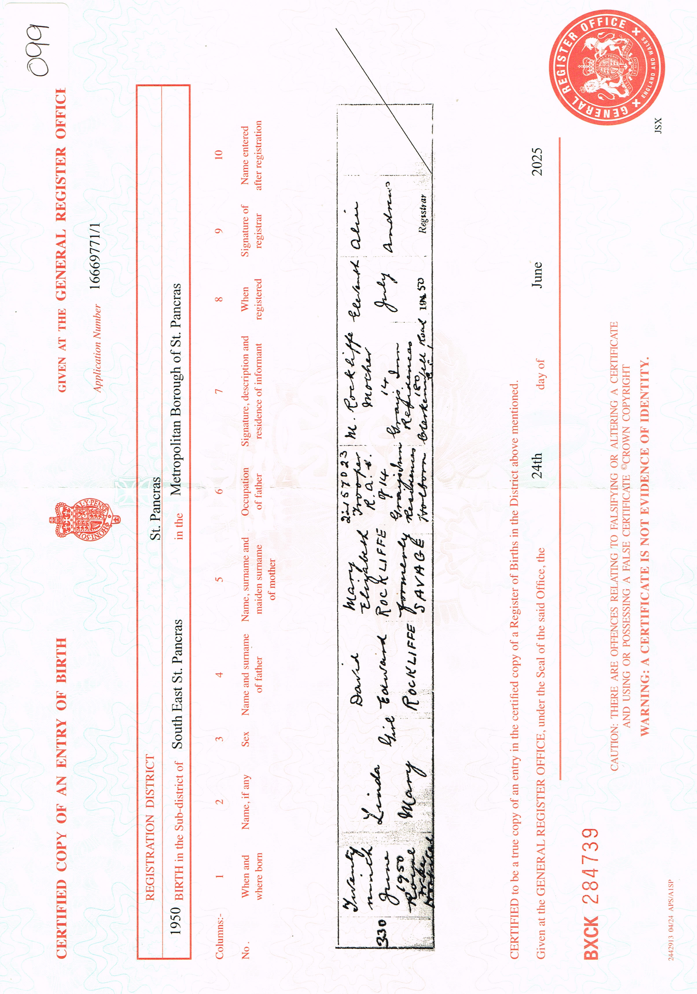 Linda M Rockliffe 1950 - .